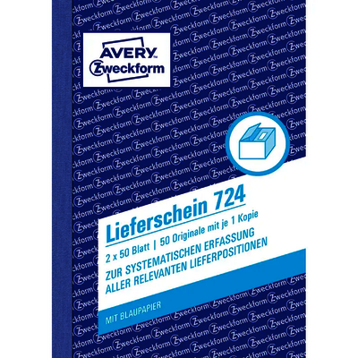 Der Lieferschein 724 von AVERY ZWECKFORM im DIN A6 Format hilft Ihnen bei der systematischen Erfassung aller relevanten Lieferpositionen. Die Liefer-/ Versandart ist bereits vorgegeben und kann angekreuzt werden. Das Lieferscheinbuch beinhaltet 50 vorgedruckte weiße Lieferscheine mit jeweils 1 weißen Blanko Duchschlag ohne Perforation zum Verbleib im Buch; und 1 Blatt Blaupapier. Die Lieferschein Vorlagen und Vordrucke von Avery Zweckform sind zuverlässige, bewährte Hilfen für Ihre Warenwirtschaft, Buchhaltung und Steuer und werden regelmäßig von Rechtsexperten geprüft.