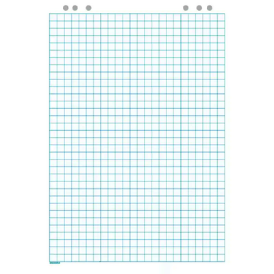 Chlorfrei gebleichtes 80gr Papier, ohne Deckblatt, 68 x 99cm, 1 Seite blanco / 1 Seite kariert, 20 Blatt gerollt, mit Aufhängeleiste.