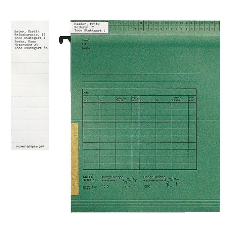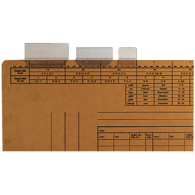 Mehrzeilige Beschriftungs-Schildchen für Einstellmappen 2430, 2435, 2437. Aus transparentem Kunststoff. Breite: 25, 50 und 60 mm.