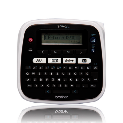 Das P-touch D200BW ist immer schnell zur Hand, wenn es darum geht, professionelle, langlebige Etiketten zu erstellen. Das Gerät bedruckt TZe-Schriftbänder in 3,5 - 12 mm Breite und das mit bis zu 20 mm/Sekunde Druckgeschwindigkeit. Die Texteingabe erfolgt bequem über die QWERTZ-Tastatur.