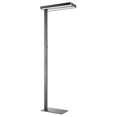 Die Stehleuchte Lixus kombiniert direktes Licht für die Arbeitsfläche mit indirektem Licht für die Raumbeleuchtung. 60% der Lichtleistung strahlen nach oben, 40% nach unten ab. Das sorgt für eine optimal-angenehme Lichtstreuung am Büroarbeitsplatz. Die Einstellung der Beleuchtungsstärke erfolgt über einen Drehschalter am Mast.