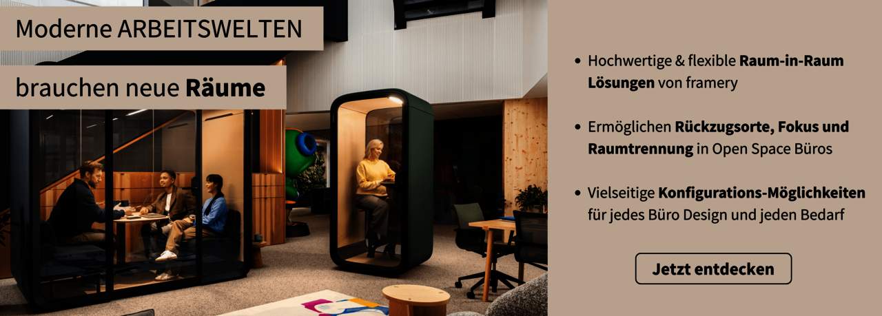 Framery Pods sind dabei ein zentraler Baustein für effiziente, flexible und zukunftsfähige Arbeitsumgebungen.
