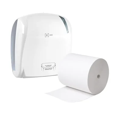 Set bestehend aus [e] one Handtuchspender e1 Autocut weiß und einer Handtuchrolle e1 Pure Food weiß.