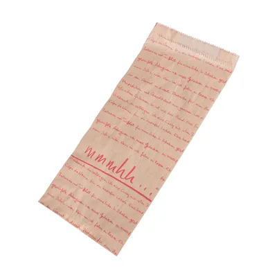 Bäckerbeutel ungefädelt aus Kraftpapier braun gerippt, mit farbigem Positivdruck.