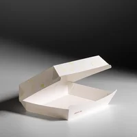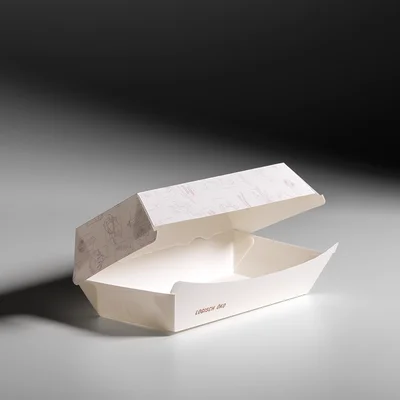 Praktische Pommesbox aus innovativem HT-Board®, die Design mit Nachhaltigkeit verbindet und eine perfekte Alternative zu Alu- und Frischhaltefolien darstellt. Hergestellt in Europa und geeignet für kalte, heiße, halbflüssige und gefrorene Speisen.