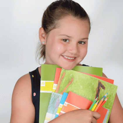 LOGO ist 'ne super Sache: es sind Schulhefte auf Basis von Lehrer:Innenanforderungen. Sie sind randfrei, die Cover sind von Kindern selbst gestaltet. LOGO XL hat den beliebten, vorgegebenen Rand.