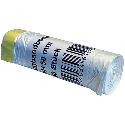 Müllsack mit Zugband aus Hochdruck-Polyäthlen (HDPE), 30l weiß, Stärke 20µm, Format 500 x 600 + 50mm, 40 Stück auf Rollen, 25 Rollen im Karton.