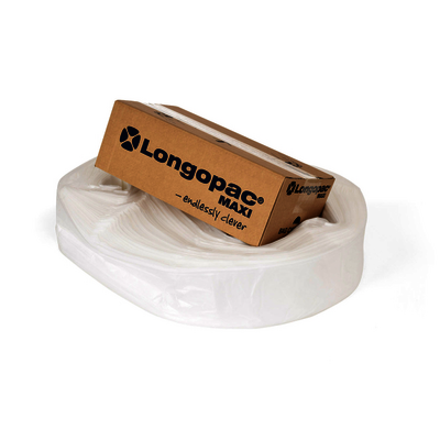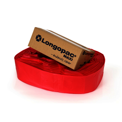 Das Longopac-Beutelmaterial besteht aus 3-lagigem Polyethylen. Trotz geringem Rohstoffverbrauch wird maximale Stabilität erzielt. Die Longopac-Kassette wird in einer speziell entwickelten Faltmaschine zu einer kompakten Kassette gefaltet. Die Longopac-Kassetten sind in mehreren Farben und Stärken sowie den Größen Mini, Midi und Maxi lieferbar.