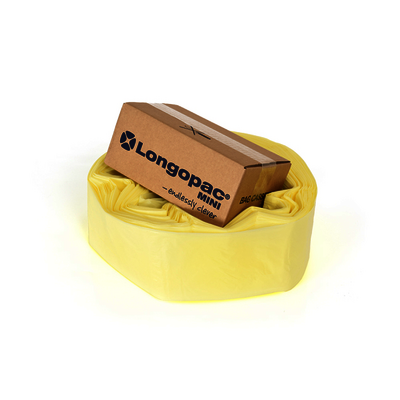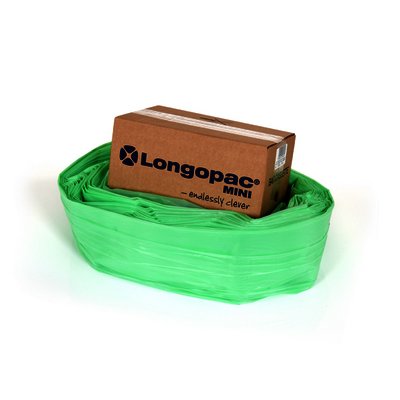 Das Longopac-Beutelmaterial besteht aus 3-lagigem Polyethylen. Trotz geringem Rohstoffverbrauch wird maximale Stabilität erzielt. Die Longopac-Kassette wird in einer speziell entwickelten Faltmaschine zu einer kompakten Kassette gefaltet. Die Longopac-Kassetten sind in mehreren Farben und Stärken sowie den Größen Mini, Midi und Maxi lieferbar.