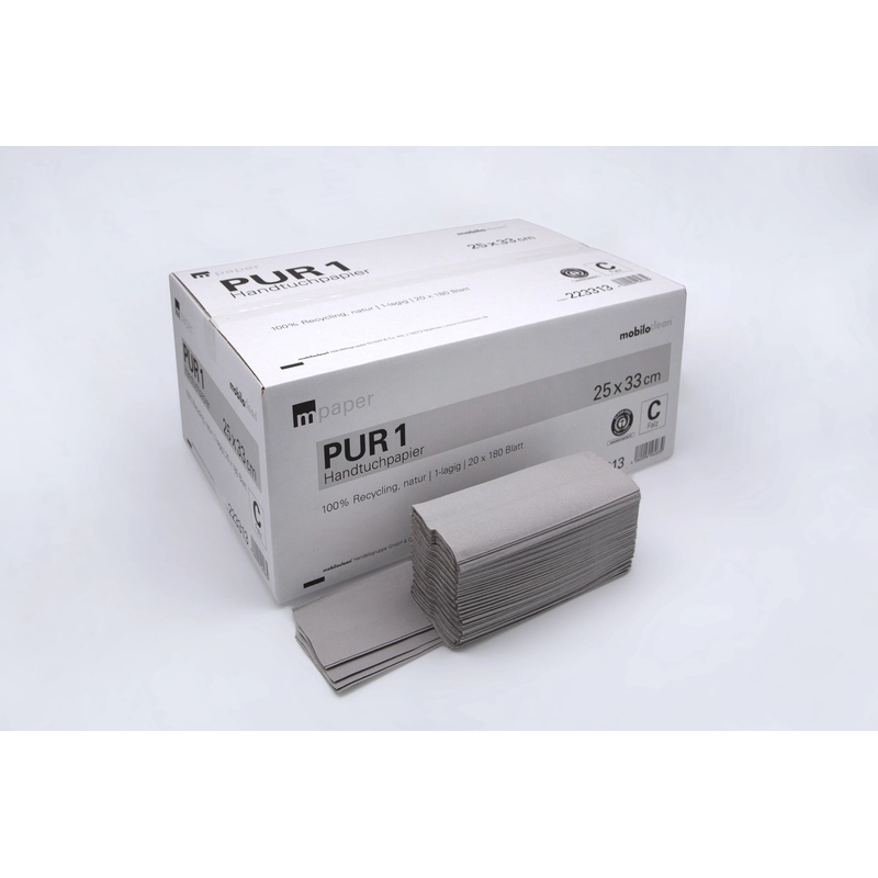 | Papierhandtuch C-Falz 1-lagig PUR1 C | ab VE | VE | Preis/VE | Preis per 1000 stk | |