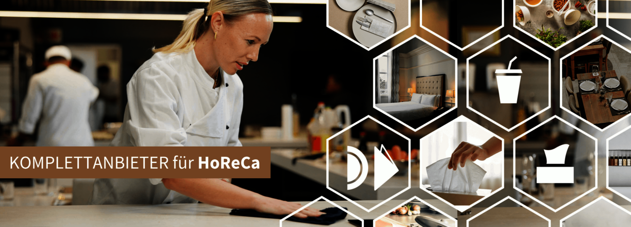 Als Komplettanbieter und Problemlöser liefern wir alles aus einer Hand: von Guest Supplies und Table Top über Take-Away-Verpackungen, Reinigungs- und Hygienelösungen bis hin zu Bürobedarf.
