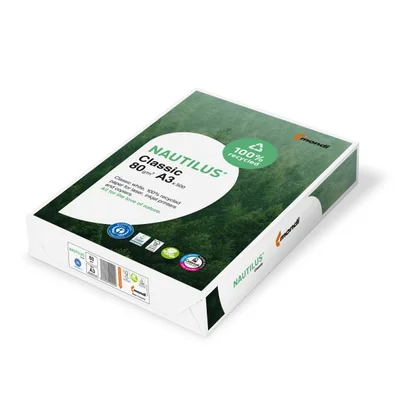 NAUTILUS® Classic kombiniert eine authentische mittlere Recyclingweiße mit dem strengen Umweltprofil des Blauen Engels. Dieses 100% Recyclingpapier ist optimiert für problemloses Drucken und Kopieren. Vermitteln Sie auf den ersten Blick eine sichtbare Umweltbotschaft.