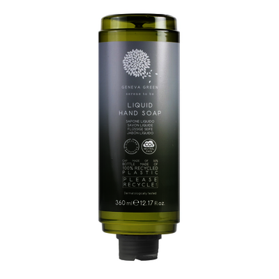 Geneva Green Flüssighandseife reinigt sanft die Haut, die leicht duftende Formel ist mit Aloe Vera-Extrakt angereichert. Die gesamte Verpackung ist zu 100 % recycelbar.