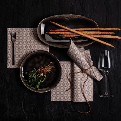 Mit den Servietten Stil wird eine einladende Atmosphäre kreiert. Gedeckte Farben und dezente Muster zeichnen diese Serie aus.