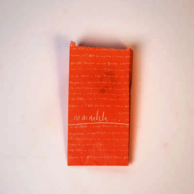 Faltenbeutel mmmhh... 120+80x380mm orange/weiß