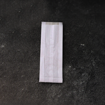 Weißer, fettdichter Beutel mit Panorama-Sichtfenster für unterschiedliche Anwendungen und mit einem Tragewicht von 2 bis 5 kg.