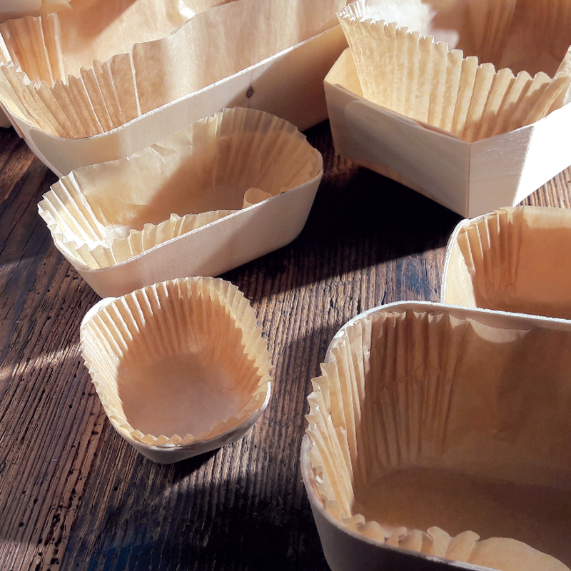 Holzbackformen aus unbehandeltem Espen- oder Pappelholz. Produkte werden praktisch verpackt und ansprechend präsentiert. Vielfältig einsetzbar.