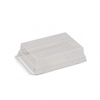 Verpackung für Süßspeisen und Obst. Der transparente Deckel aus rPET ermöglicht eine optimale Sicht auf die Produkte. Die Verpackungen sind wiederverschließbar und stapelbar.