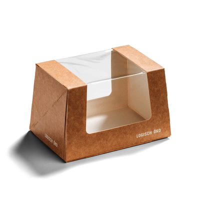Ob Obstkuchen, Schokoschnitten oder Creme-Rouladen – in der LogischÖko Pyramidverpackung von Messerle aus Karton präsentieren Sie Ihre gebackenen Köstlichkeiten ansprechend und nachhaltig.Dank der Antifog-Beschichtung beschlägt die Fensterfolie nicht. Die einzelnen Kuchenverpackungen werden flach angeliefert. (FSC®-zertifiziert / Messerle C159309)