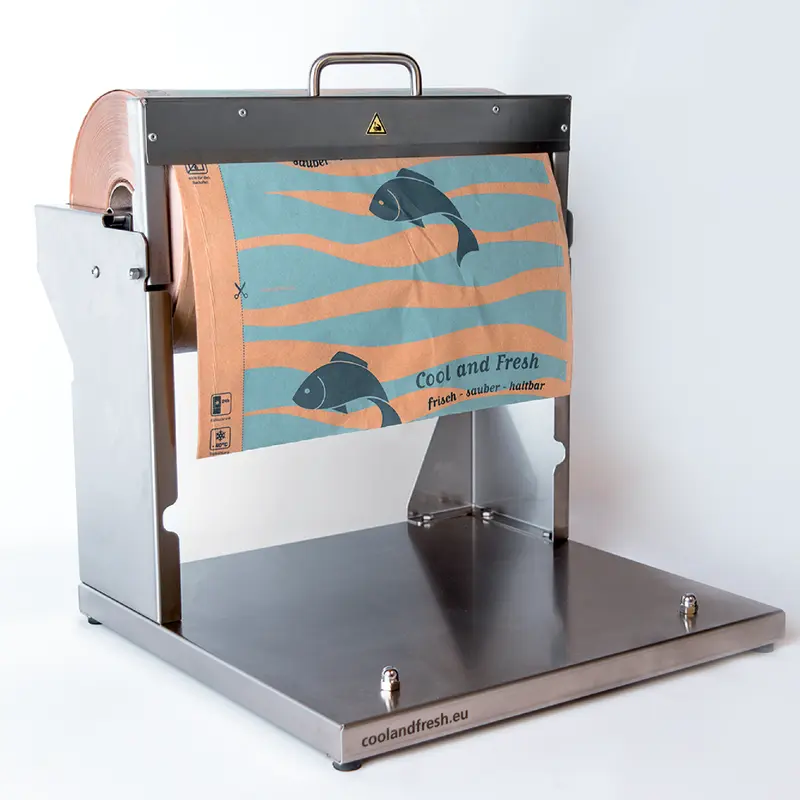 Theken-Impulssiegelgerät inkl. Abroller, perfekt abgestimmt für unsere Fischbeutel Cool and Fresh. Einfachste Handhabung, absolut flüssikeitsdicht, garantierte Frische!