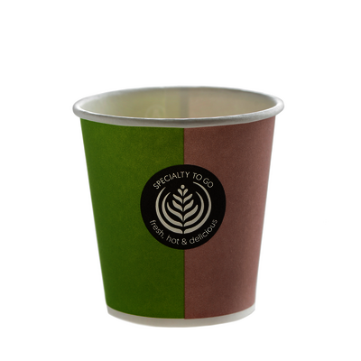 Heißgetränkebecher aus Hartpapier mit Neutraldruck dunkelbraun/grün, in verschiedenen Größen