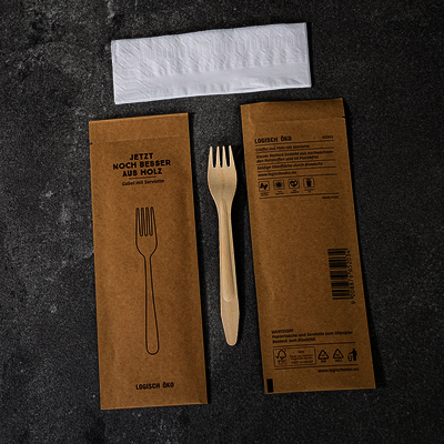 - Bestecktasche aus braunem FSC®-zertifiziertem Kraftpapier „plastikfrei“!