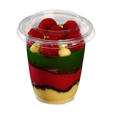 Schwungvoll, schlicht, elegant - so präsentieren Sie Ihre Desserts in diesem Dessertbecher. Hochwertiger Becher aus APET für die Verwendung als Einweg- und Mitnahmebecher.