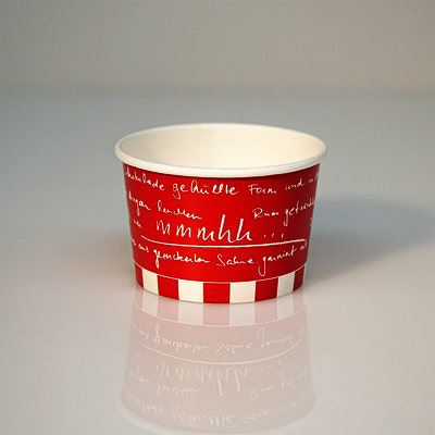 Eisbecher aus Hartpapier weiß , Druck korallenrot, 355ml, 12oz