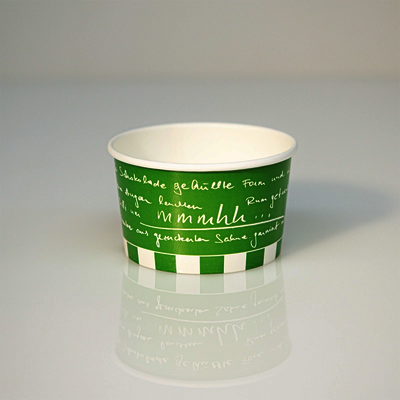 Eisbecher aus Hartpapier weiß , Druck smaragdgrün, 295ml, 10oz
