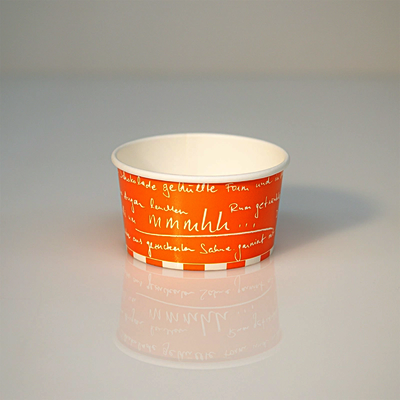 Eisbecher aus Hartpapier weiß , Druck zitronengelb, 150ml, 5oz