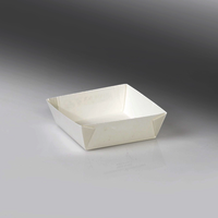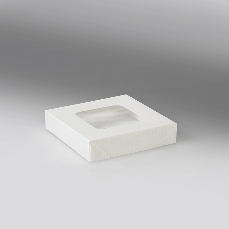 Offener Tray aus innovativem HT-Board® und separatem Deckel, der Design mit Nachhaltigkeit verbindet und eine perfekte Alternative zu Alu- und Frischhaltefolien darstellt. Hergestellt in Europa und geeignet für kalte, heiße, halbflüssige und gefrorene Speisen.