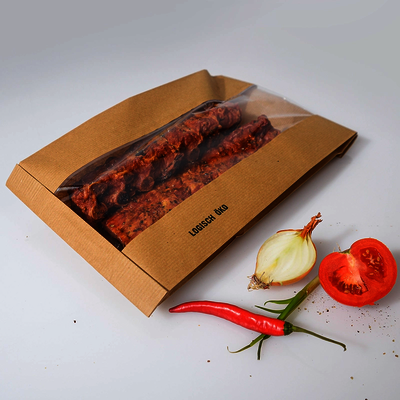 Thermoversiegelte Warmhaltebeutel mit einem mittigen Sichtstreifen.