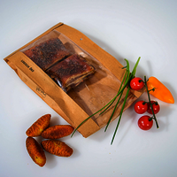 Thermoversiegelte Warmhaltebeutel mit einem mittigen Sichtstreifen und Entlüftungsloch.