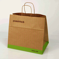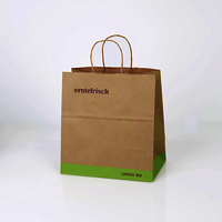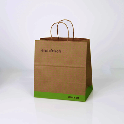 Take-Away Tasche – im frischen Design aus braunem 100g/m2-Papier mit Druck.