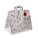 Aus weißem Kraftpapier 110 g/m², bedruckt mit grauem Motiv "Greet" sowie rotem Farbpunkt mit Aufschrift "frisch, fein & dein", mit eingeklebten weißen Tragegriffen.