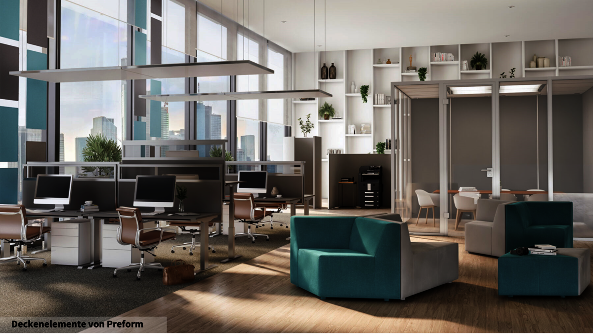 Licht & Raumakustik haben einen entscheidenden Anteil daran, wie wir uns am Arbeitsplatz fühlen – ob wir den Raum als angenehm und wohltuend oder als anstrengend und belastend empfinden. Wir bieten Ihnen mit unterschiedlichen Akustikmodulen und Lichtlösungen Produkte mit denen gezielt die Raumakustik und Licht beeinflusst werden kann.