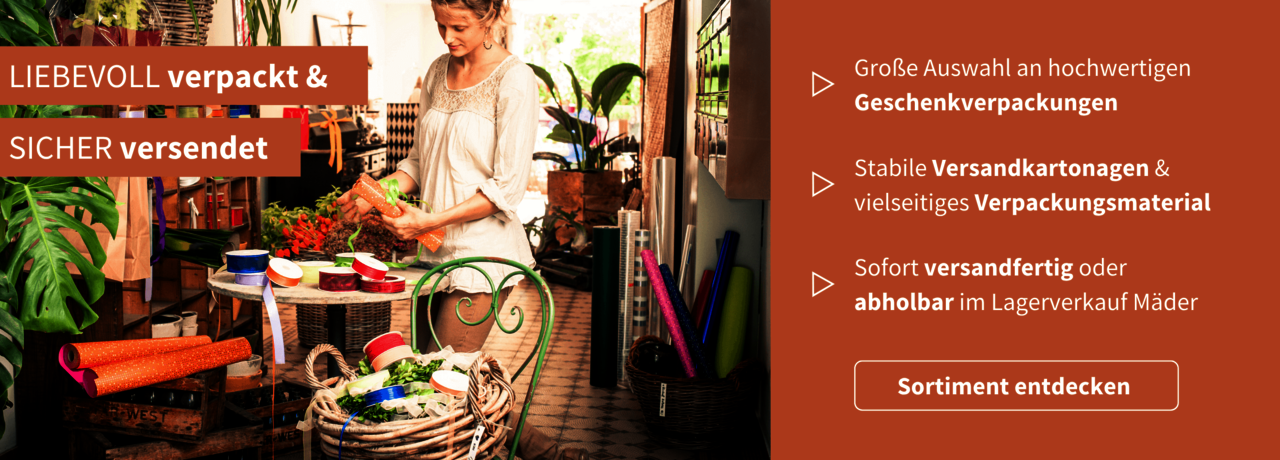 Verpackungsmittel sofort abholbereit im Fachgeschäft